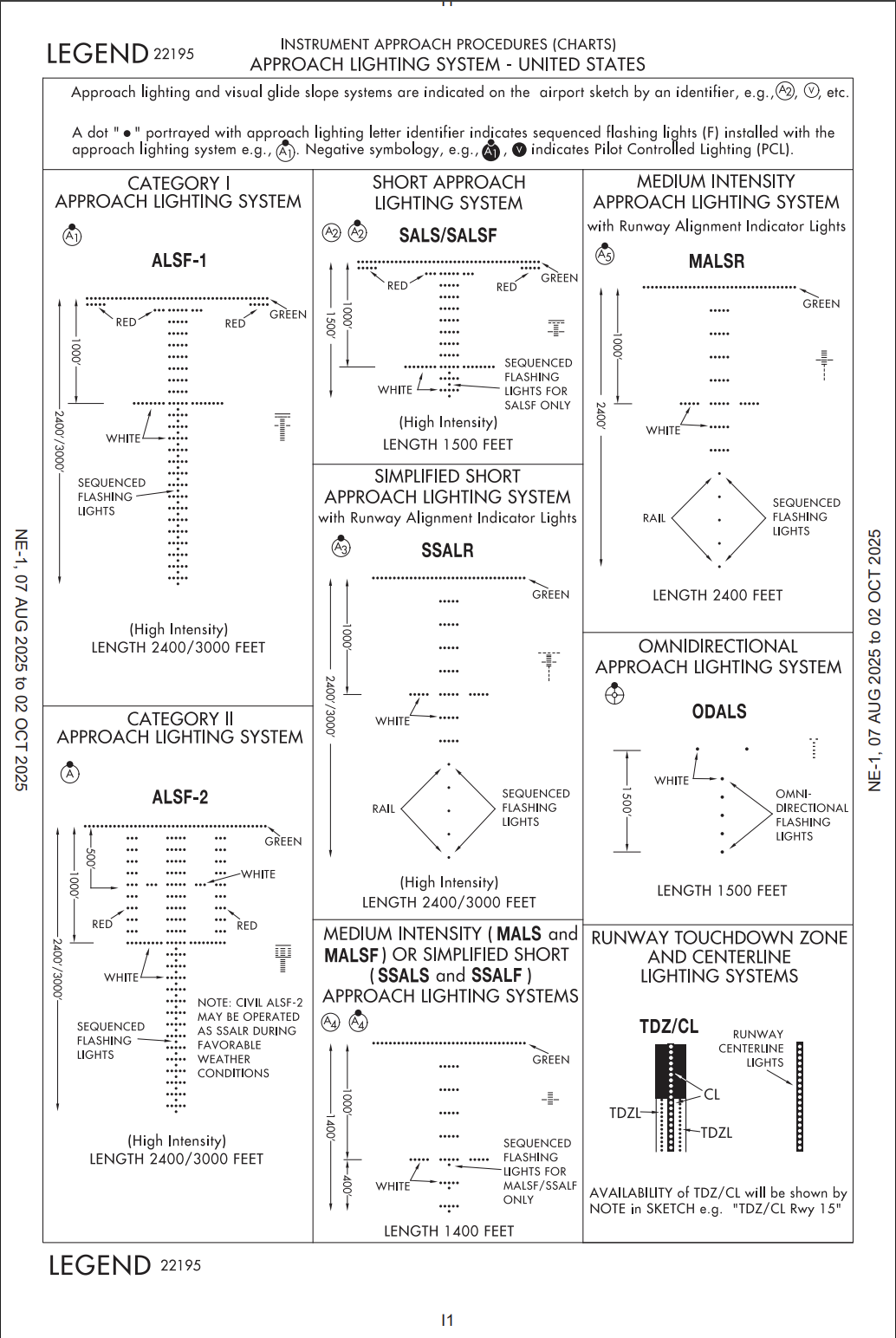 - ALS : red terminating bars (ASLF-1) or red side row bars (ALSF-2) → descend below 100ft above TDZE